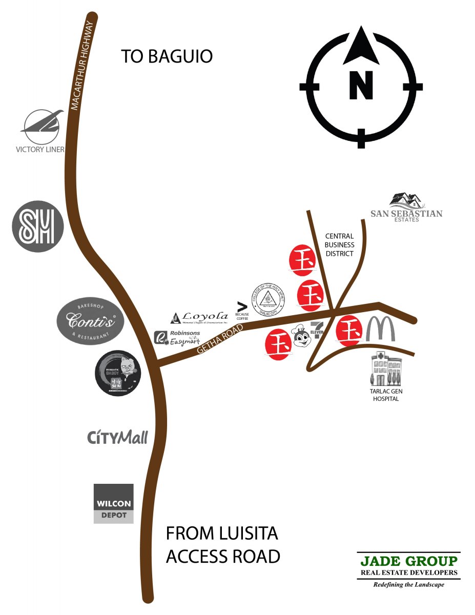 | Sangguniang Panlalawigan Tarlac – 0km | Tarlac City Hall – 3km | Luisita Industrial Park – 5.7km | Sutherland Tarlac – 5.7km |